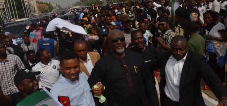 The protesters chanted songs and displayed the PDP flags and placards with inscriptions such as ‘We are a united democratic nation, not a Banaba Republic’; Do the right thing. Save Nigeria,’ and ‘Supreme Court, reverse your judgment on Ihedioha.’