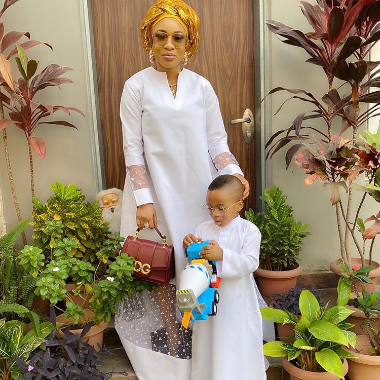 Dressed in a stunning white outfit, TontoDikeh looked gorgeous as well as her son, Andre who was also dressed in similar outfit.